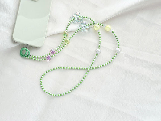 Handmade Crossbody Beaded Phone Strap | High-Quality Y2K Charm | Green & White | Bridesmaid Gifts | Party Favor